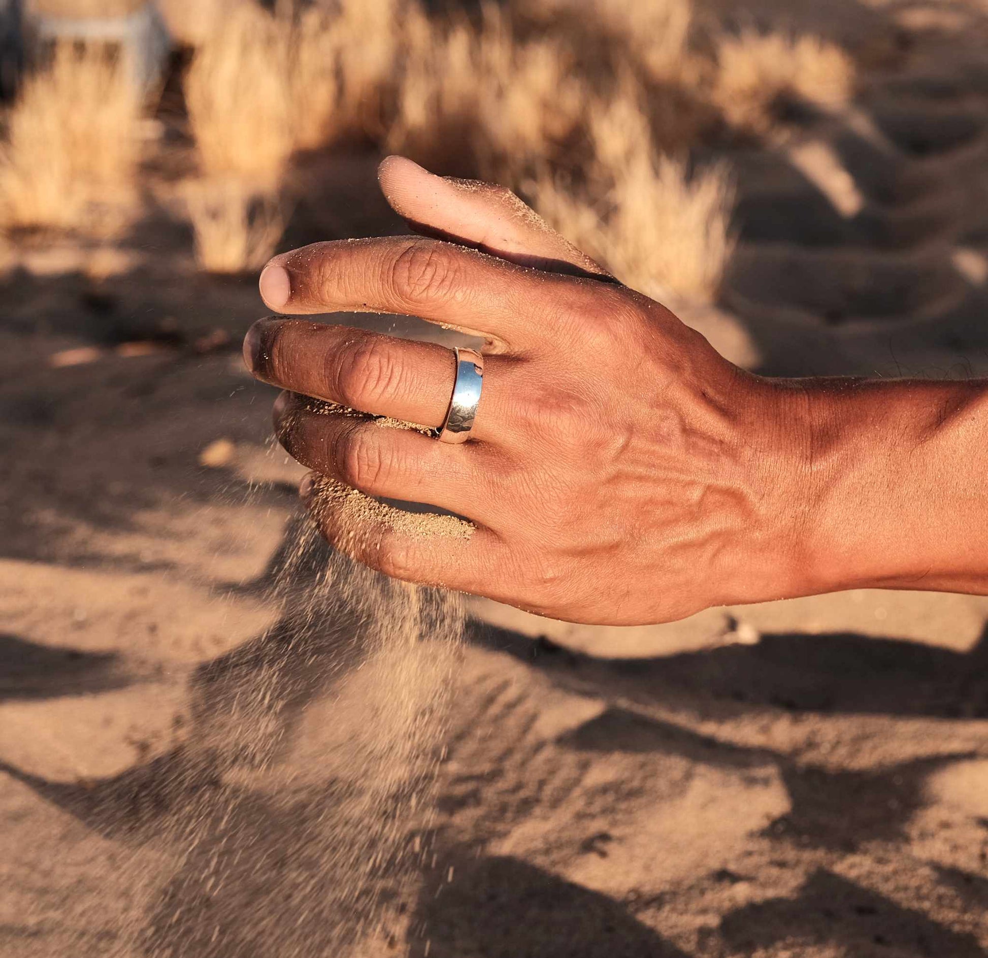 Bold, solid, and effortlessly stylish—this sterling silver ring is crafted using traditional sand casting and hand-forged to its final shape. Thick and weighty, it’s designed for any finger, though it’s often worn as a thumb ring. Its rugged yet refined look makes it perfect for everyday wear, whether you’re at work or out for any occasion. May this heavy ring elevate your style and complete your silver collection.